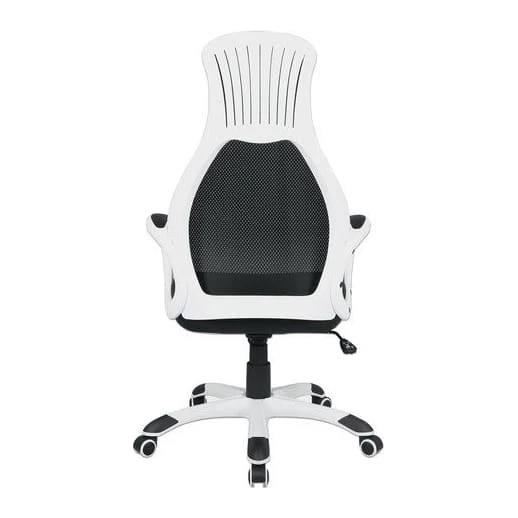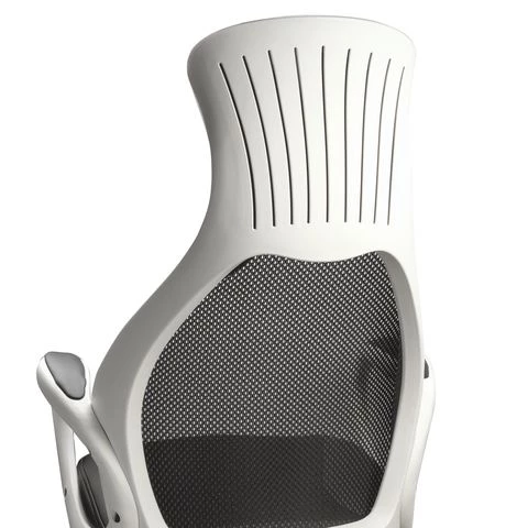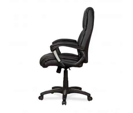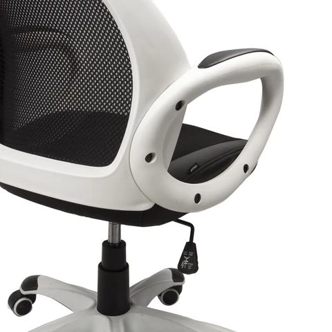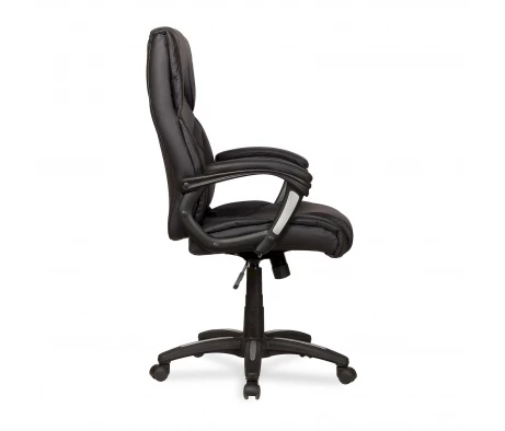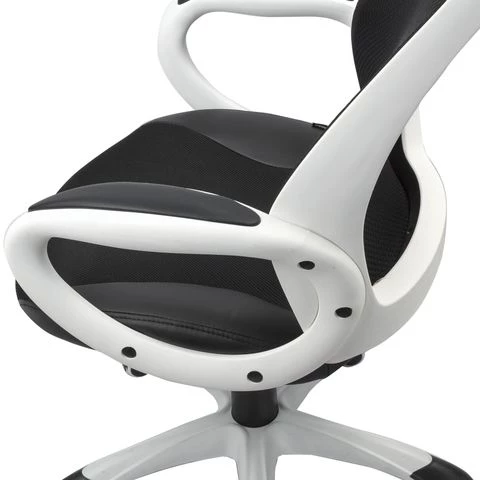 Такое кресло руководителя за счет применения новейших материалов и технологий, обладает невысокой стоимостью, при этом не теряет в уровне исполнения. Подлокотники, каркас и пять лучей основания сделаны из нейлона, этот пластик нового поколения характеризуется своей прочностью и долгим сроком службы. Крестовина для повышения практических качеств сверху покрыта дополнительным износостойким слоем. Ролики прорезинены, это исключает лишний шум при движении и сохраняет пол в целостности. Отдельно хочется выделить обивку данной модели, комбинация экокожи, ткани и сетчатого полотна помимо визуального эффекта имеет и чисто практические плюсы. Все материалы способны пропускать воздух, спинка выполнена полностью из сетки, что обеспечивает отличную вентиляцию. К тому же, сетка — очень прочна, она не вытянется и не повредится по прошествию долгого времени. Экокожа придает дизайну респектабельности, а также сходства с автомобильными сиденьями спорткаров.