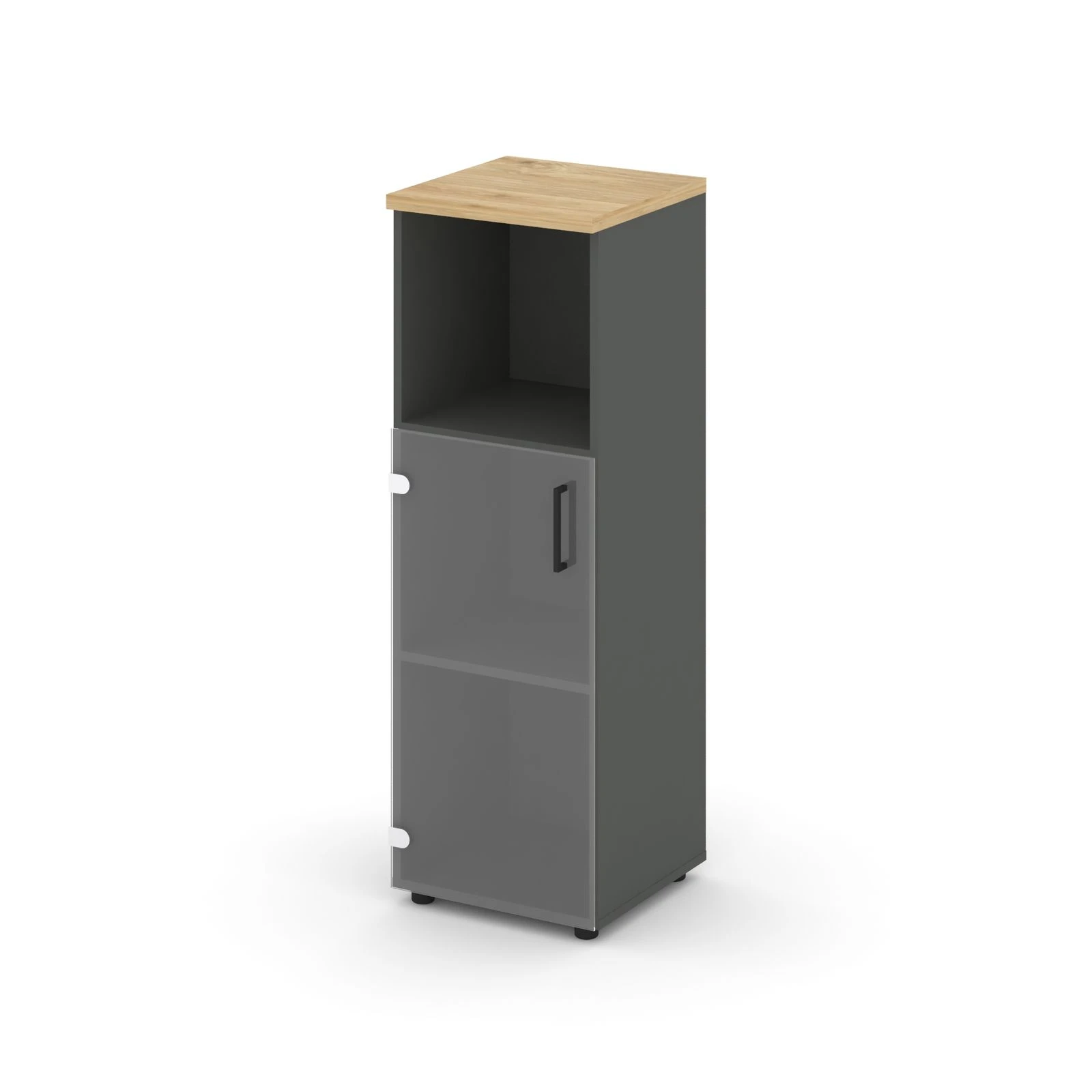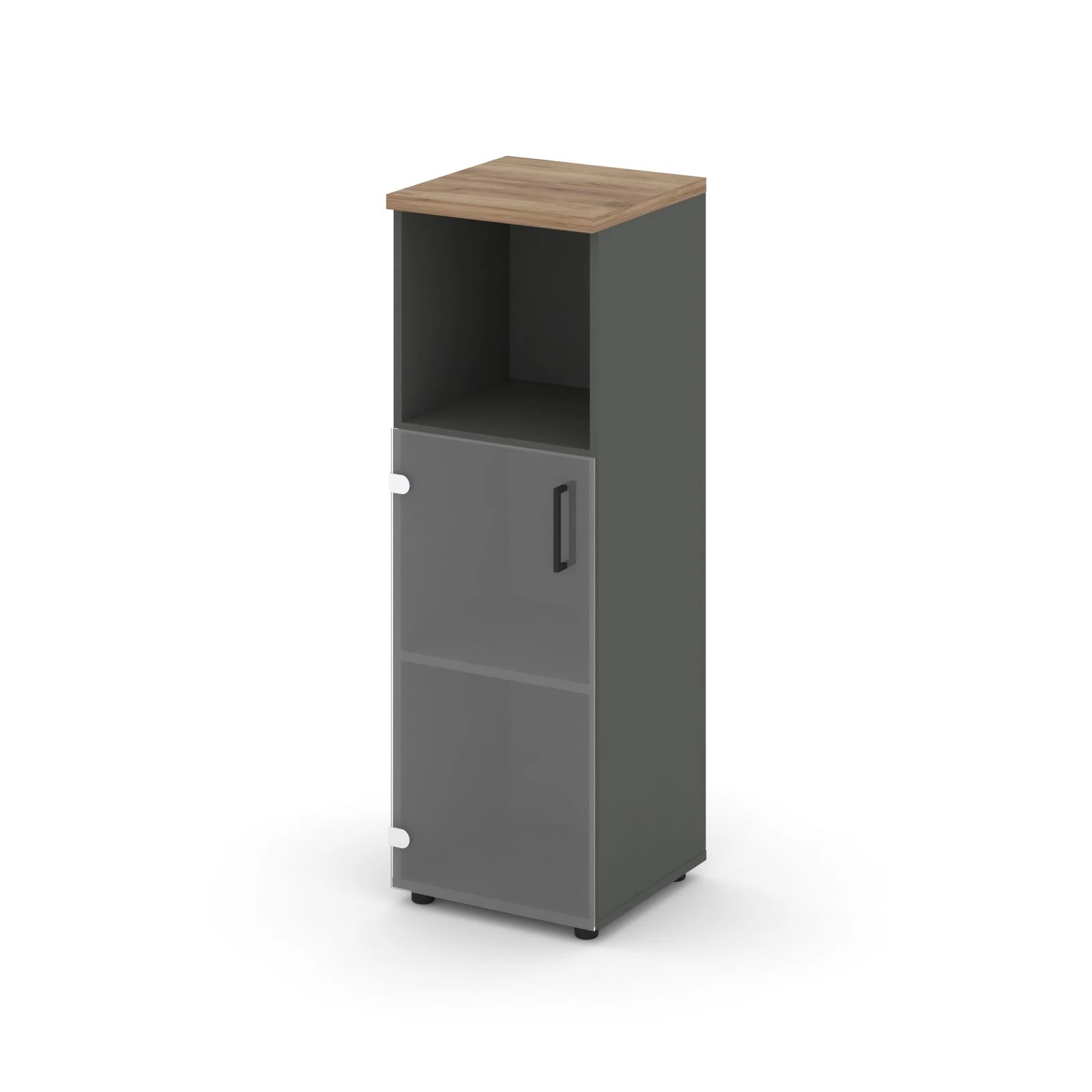 Шкаф средний узкий левый прозр. стекло с нишей 400x400x1203 зад. стенка HDF Стайл Проджект / Style Project