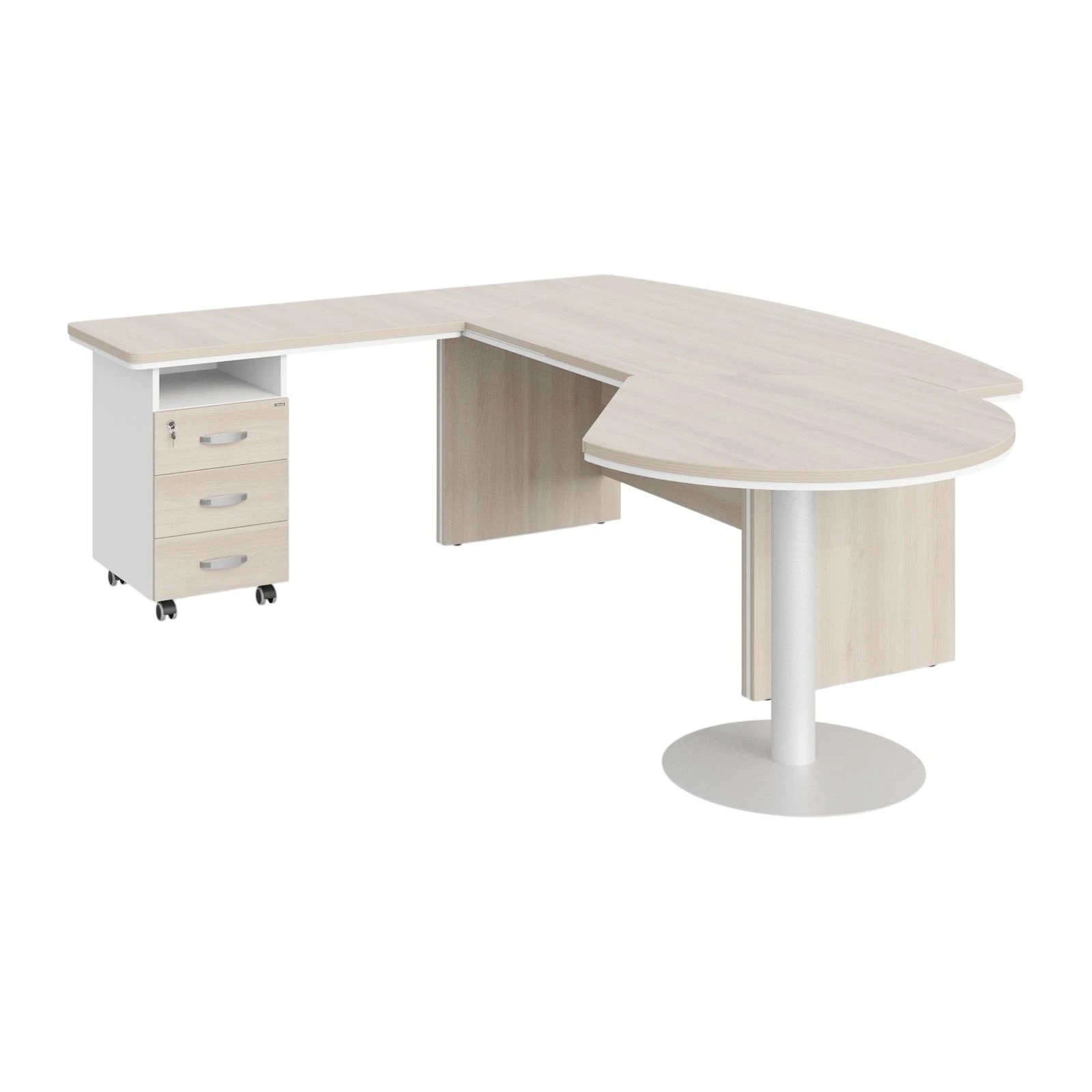 Стол руководителя угловой с брифингом и приставной тумбой L 235х205х76 Berlin Director Акация светлая/Белый премиум