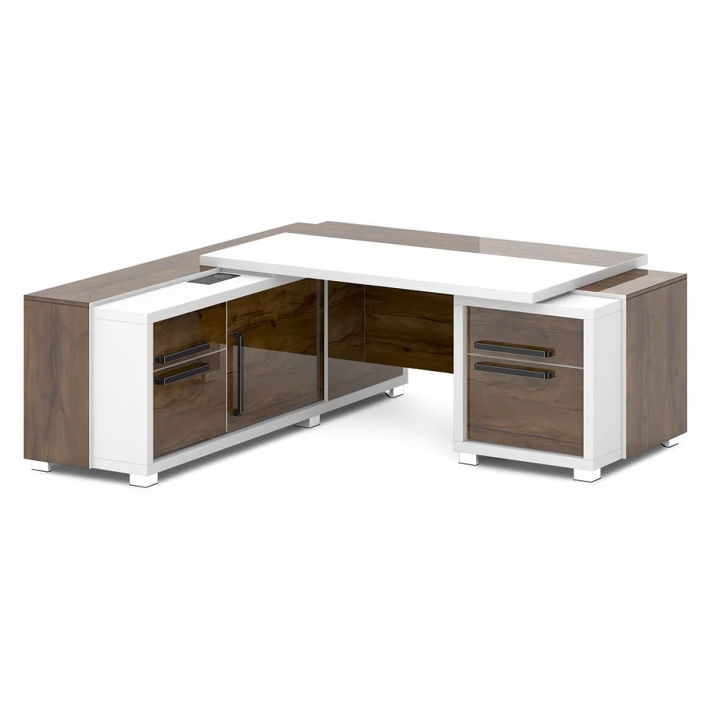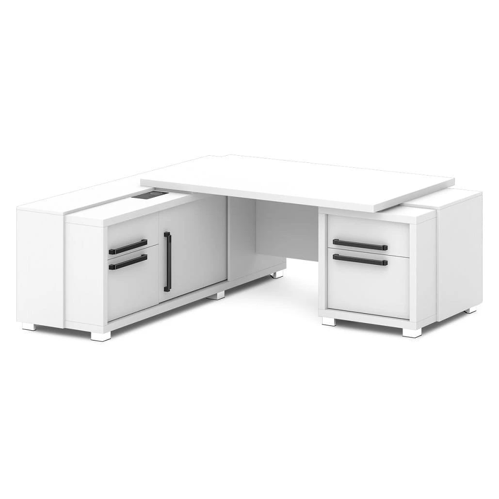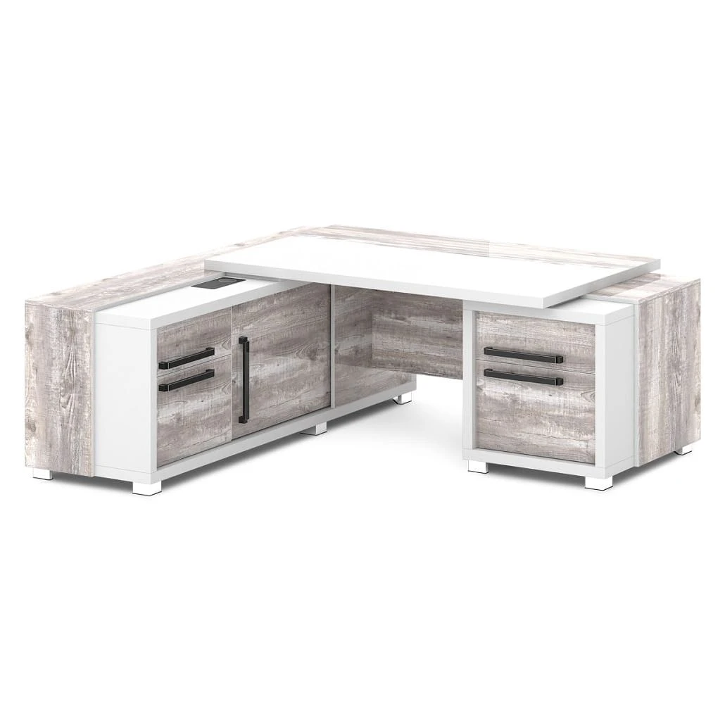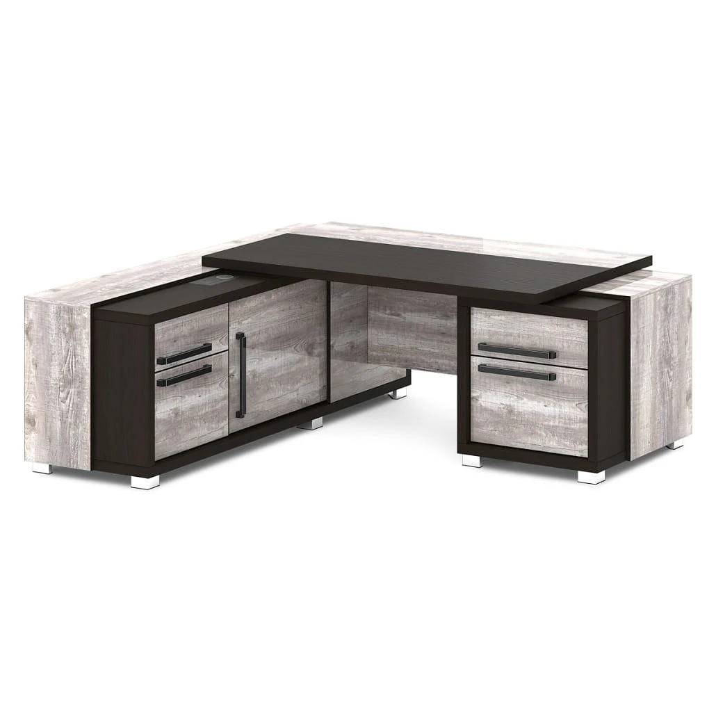 Стол с тумбой и греденцией (беспроводная зарядка, 2xUSB, розетка) 2070х2016х750 Грейс / Grace