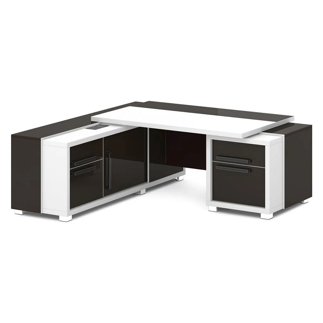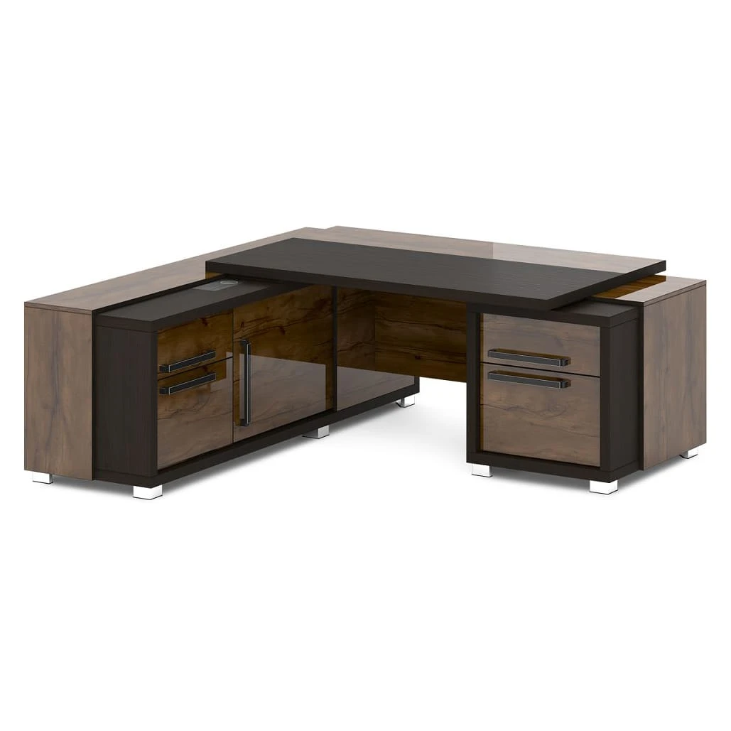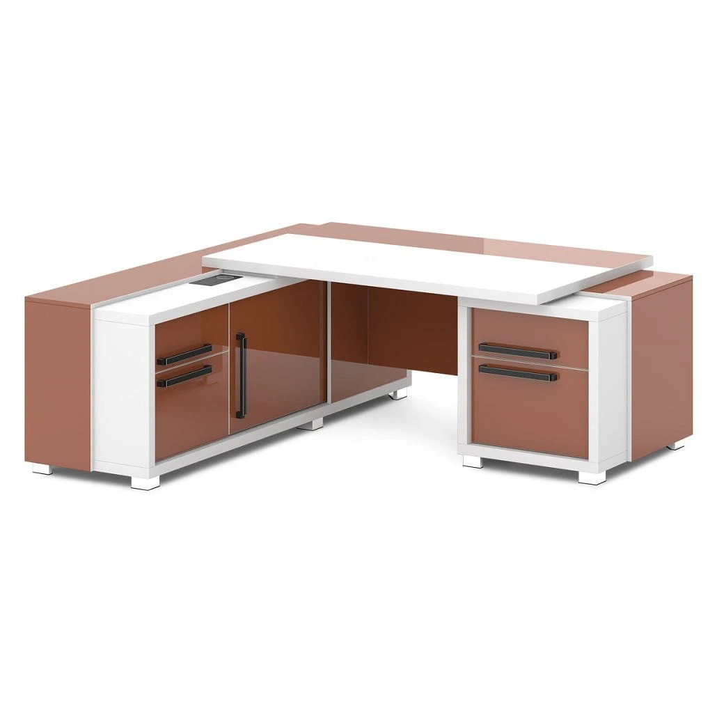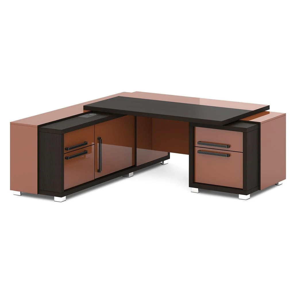 Стол с тумбой и греденцией (беспроводная зарядка, 2xUSB, розетка) 2070х2016х750 Грейс / Grace