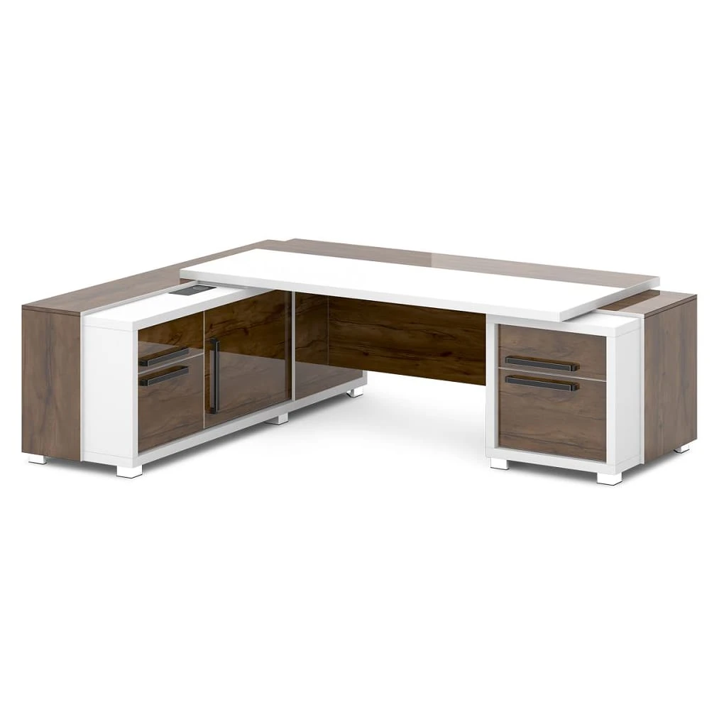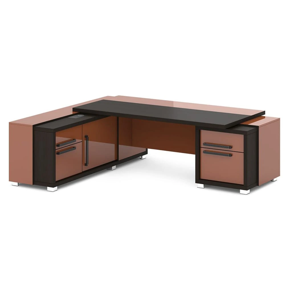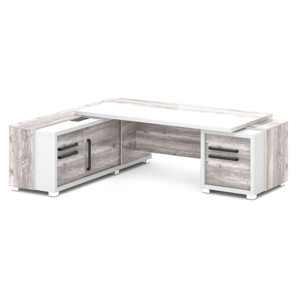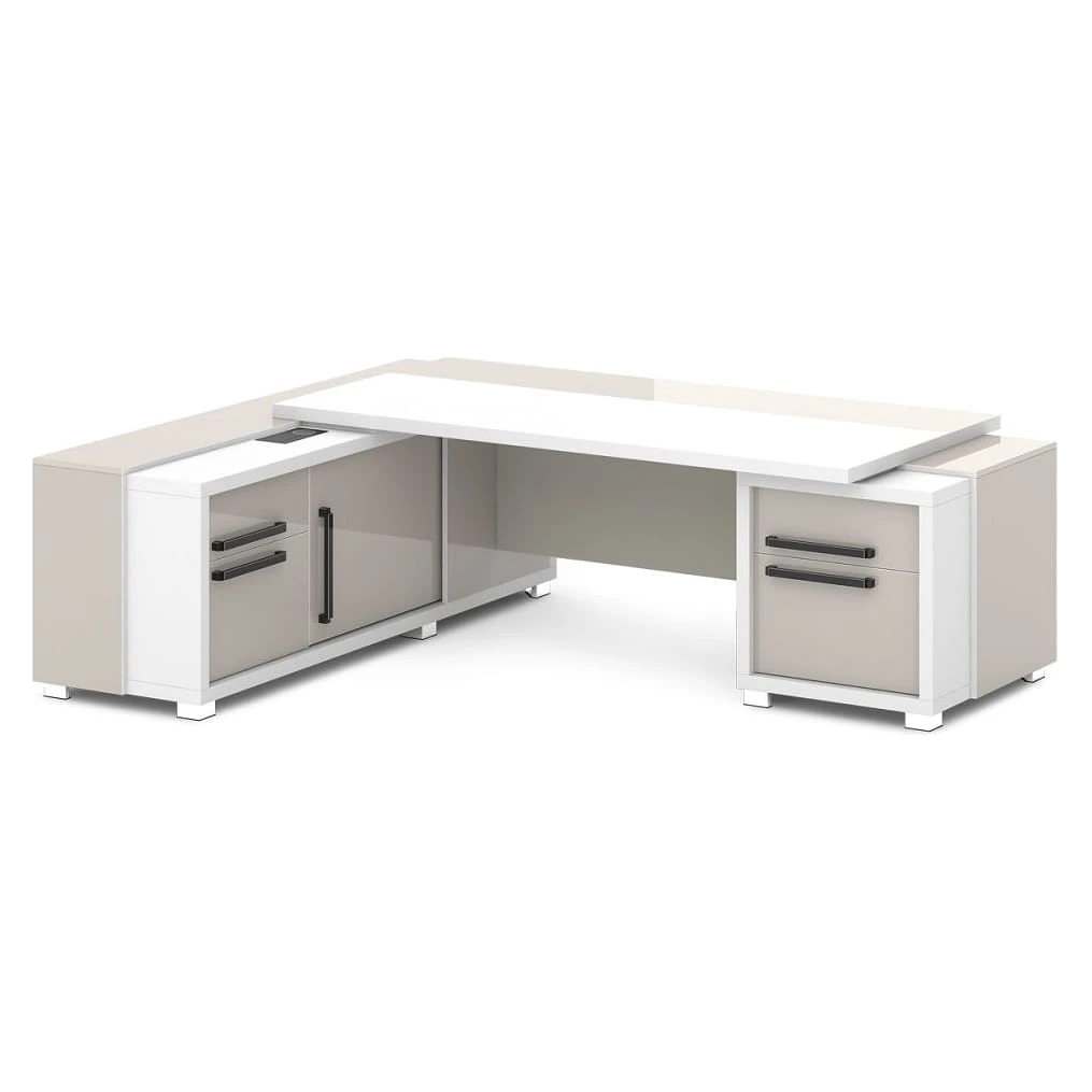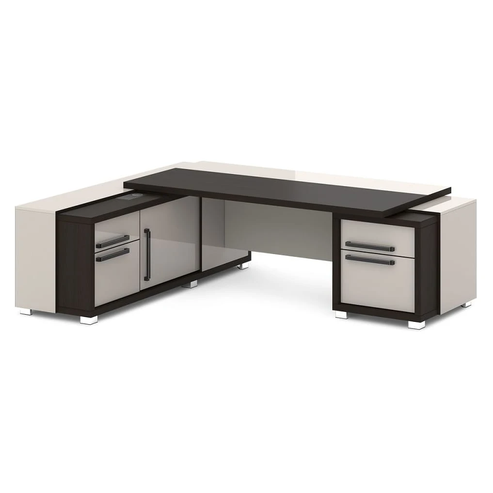 Стол с тумбой и греденцией (беспроводная зарядка, 2xUSB, розетка) 2470х2016х750 Грейс / Grace