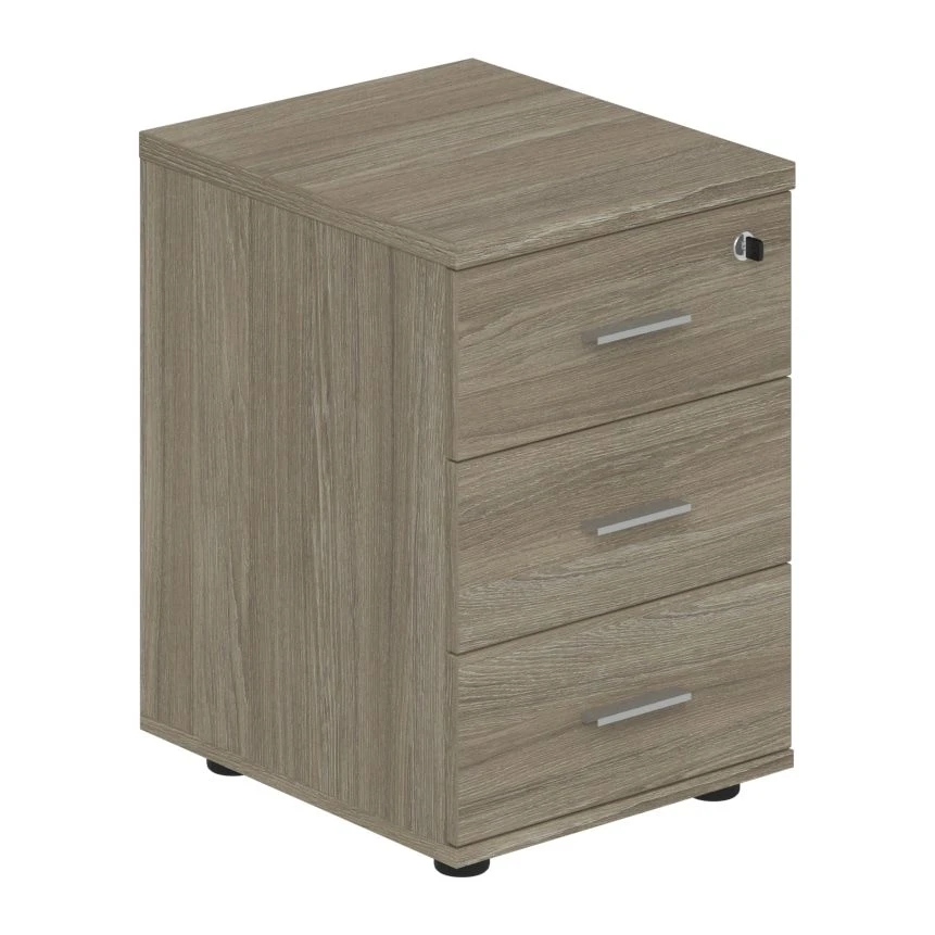 Тумба опорная (мобильная) с 3-мя ящиками + замок Винг / Wing Дуб темный